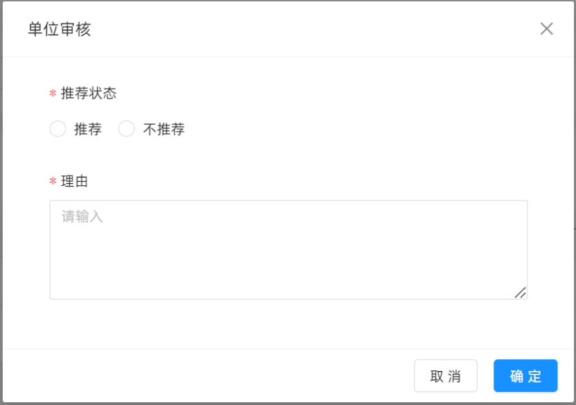 3. 单位【不推荐】,申请信息退回至申请人,状态变更为已退回。