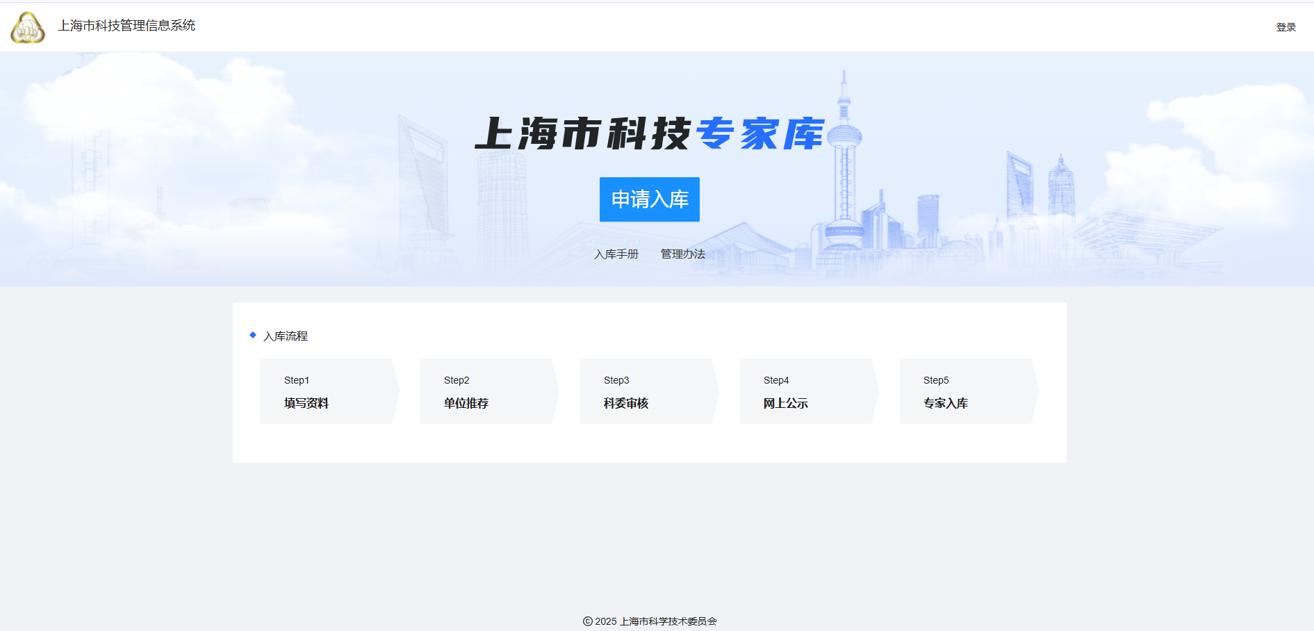 上海市科技专家库常年在线征集专家,申请人可随时在线申请入库。